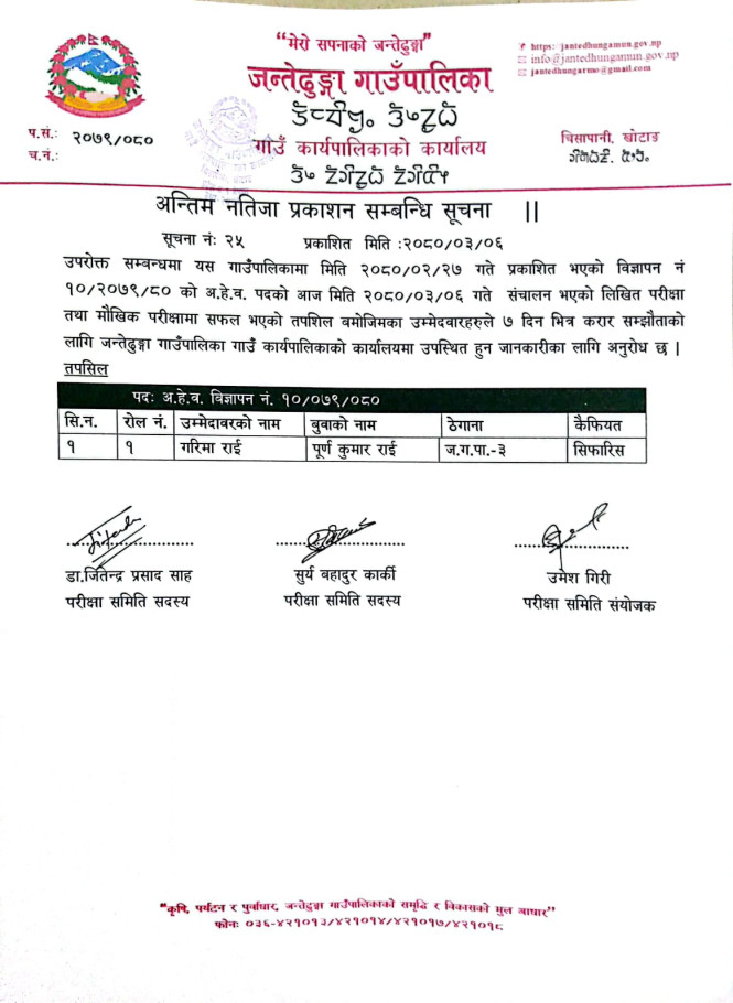 » अन्तिम नतिजा प्रकाशन सम्बन्धी सूचना ।।