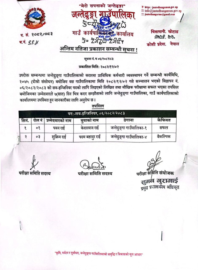 अन्तिम नतिजा प्रकाशन सम्बन्धी सूचना ।
