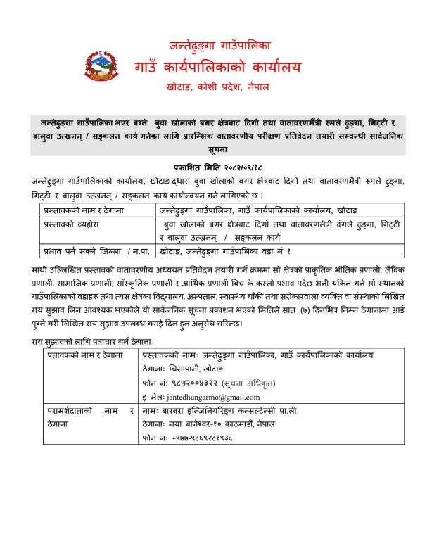 दोस्रो प्रारम्भिक वातावरणीय परीक्षण सार्वजनिक सूचना ।