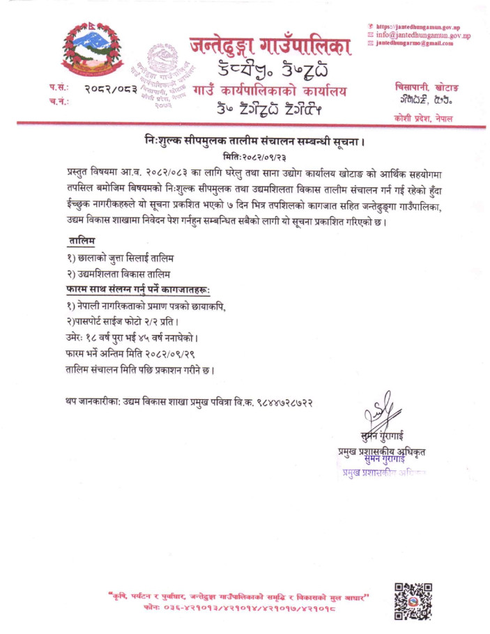 » निःशुल्क सीपमुलक तालिम संचालन सम्बन्धी सूचना ।