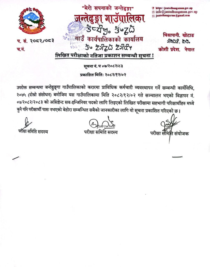 » लिखित परीक्षा नतिजा प्रकाशन सम्बन्धी सूचना ।