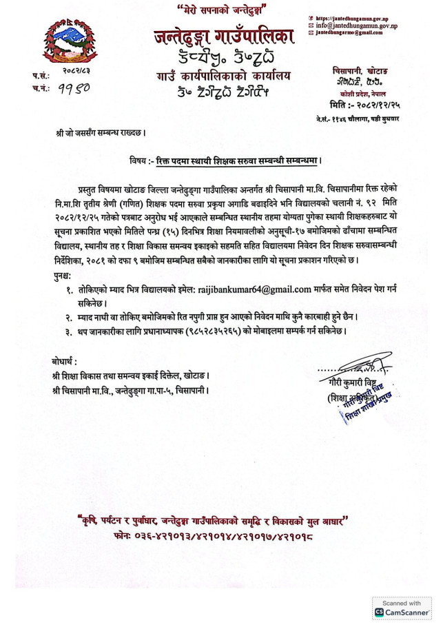 स्थायी शिक्षक सरुवा सम्बन्धी सूचना ।