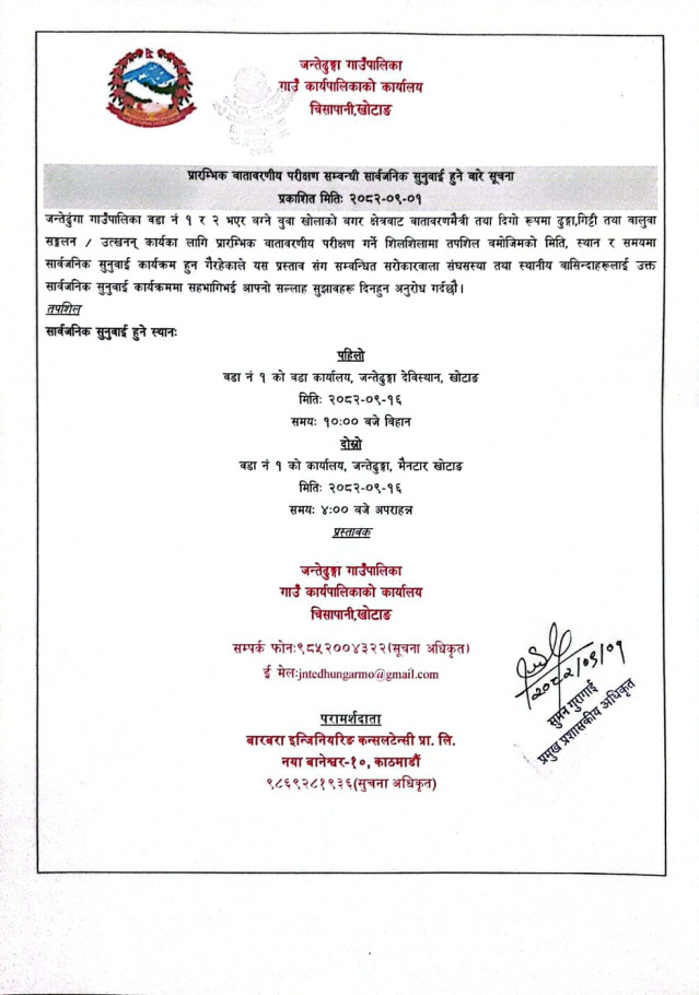 » प्रारम्भिक वातावरणीय परीक्षण सार्वजनिक सुनुवाई हुने बारे सूचना ।